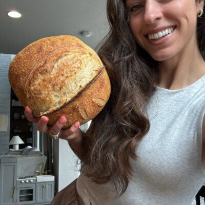 One of the top questions I get is how to make and tend to your sourdough starter, to make your very own homemade sourdough breads! Which is WAY more than just a traditional sourdough loaf.. if you’ve followed me for a year you know sourdough starter can be the healthy base for literally any baked good, snack and bread! It has completely replaced my store bought bread, tastes 10x better, is more digestible and bioavailable with simpler ingredients and much better nutrients – fueling my body without feeling heavy or bloated or unable to digest! 🤗Step by step: making your own sourdough starter:What you need: kitchen scale, glass jar (at least 24-32oz big!), unbleached white flour (a lot!), filtered water, plastic wrap/lid, spatula to stir. All measurements will be in grams.Day 1: weigh your container and document that weight somewhere so you remember it!mix 50g flour & 50g water in jar until very well combined. Cover with plastic wrap or lid and leave on the counter for 48hrs.Day 2: stir once about 24hrs since starting just to help encourage the fermentation process, cover and leave on counter.Day 3: around 24hrs later, weigh container with starter and subtract the weight of the container (that you were supposed to document on day 1🤭) to get the net weight of starter. Example – my container weighed 250grams and now it weighs 350grams so I have 100grams of net starter. Feed your starter 1:1 ratio of flour and water (equal amounts of its net weight) So I’m feeding mine 100grams of flour and 100grams of water since it weighs 100grams. Mix, cover, sit on counter for 24hrs.Day 4: around 24hrs later, weigh container with starter. If the net weight is over 100grams, discard (or empty) some starter from the container to get it back down to a net 50grams (or somewhere close, doesn’t have to be perfect!) this is only to help you not use up so much flour and water every time you feed it! Save your discard in a jar (SO many easy recipes to use discard!!) or throw it away in trash. Putting it down the sink won’t be good for your drain! Now feed it the same 1:1 flour & water ratio as your final net weight. Mix, cover, keep on counter.Day 5-7: repeat step 4 every 24ish hours until your starter looks like it grows and doubles in size around 12hrs after feeding it. You can mark your jar with a marker or rubber-band after feeding it to visually see that it has increased in size (doesn’t have to be a perfect double). This means it is active! It should be very bubbly and when you drop a spoonful in water, it should float! This means it is ready to use in a recipe as a natural form of yeast and leavening agent 😍💪To keep your starter alive, you should feed it a minimum of once a week using the same process above. When you are not baking with it, it can go in the fridge! Just bring it out a few hours before feeding it, waiting 12ish hours for it to become active, and then use it to bake!