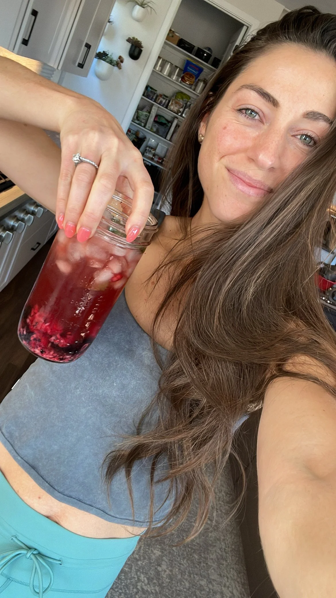 Like a Starbucks refresher but SO much better, healthier, and cheaper. Immune boosting tea with antioxidant loaded berries topped with detoxifying mint