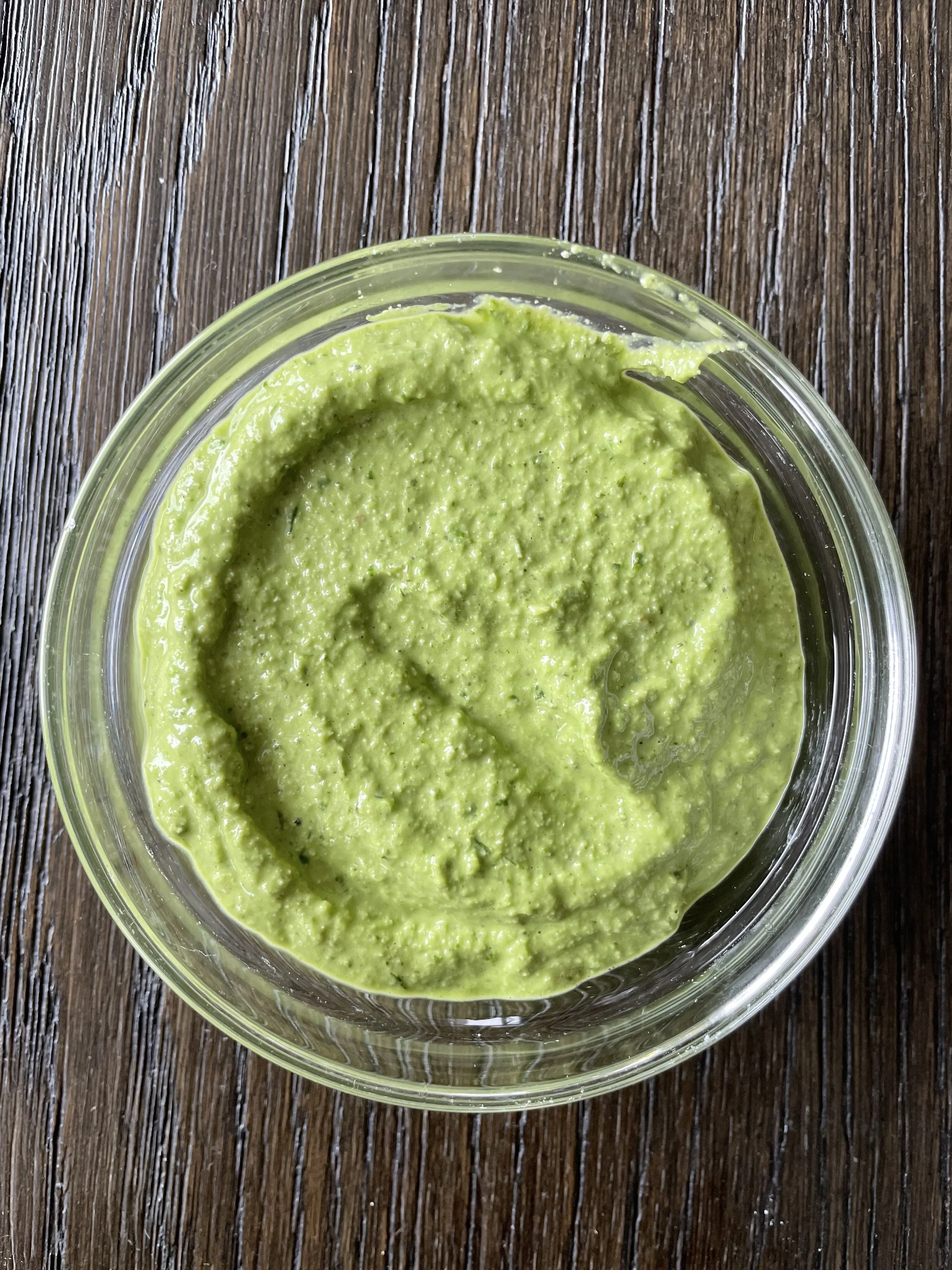 - Load the leaves first into a tall mason jar or small food processor. Top remaining ingredients and blend all ingredients on high. I prefer a handheld immersion blender because I can better control making sure everything gets blended well for the creamiest texture – and it’s much easier to clean! Store in the fridge in an airtight glass container for up to 5 days, or freeze. Shake well before using.