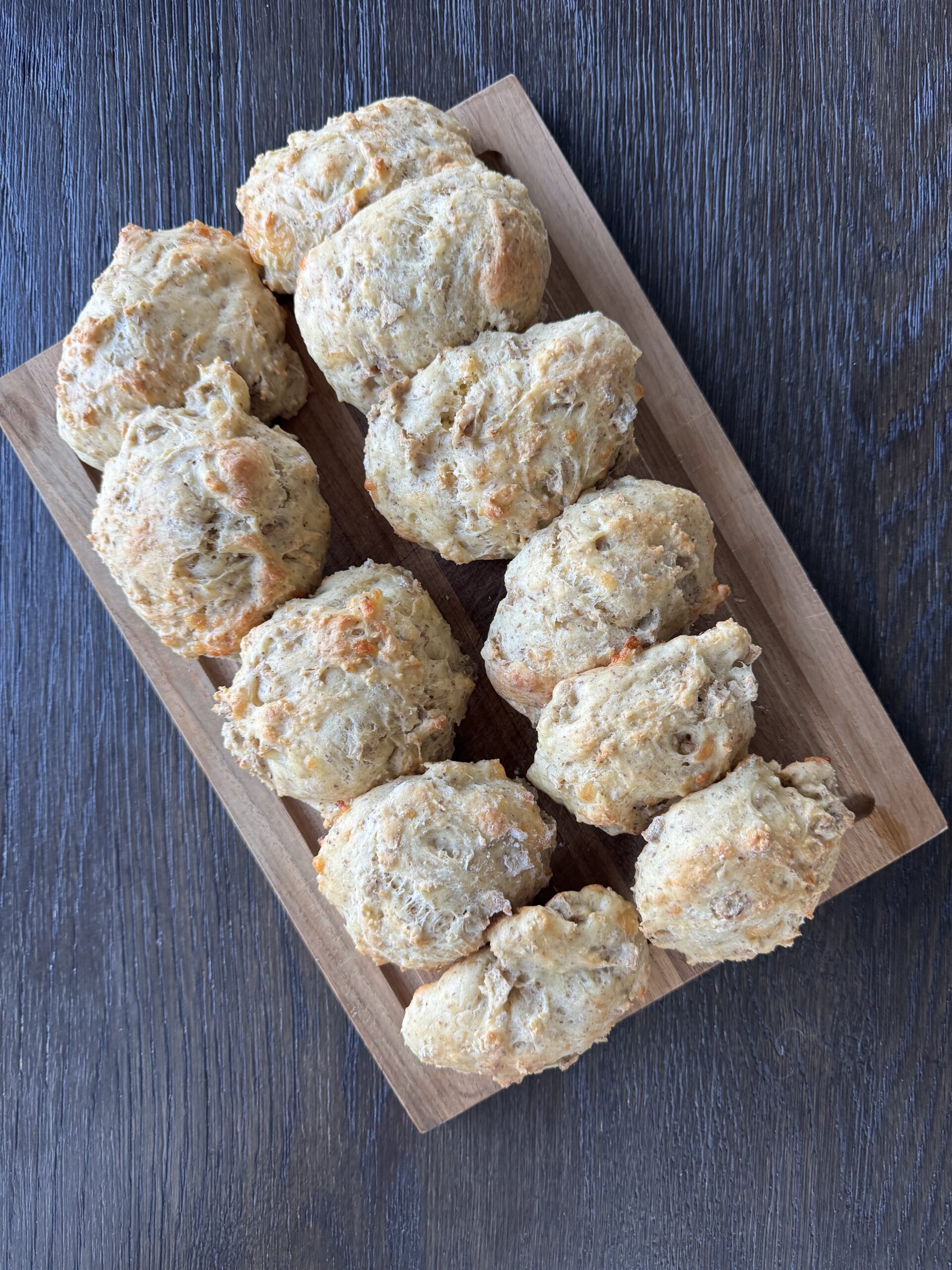 Like a breakfast sandwich made into a mess free HEALTHY biscuit with 4 sources of protein for gut healthy variety and versatile ingredients to switch it up every time!