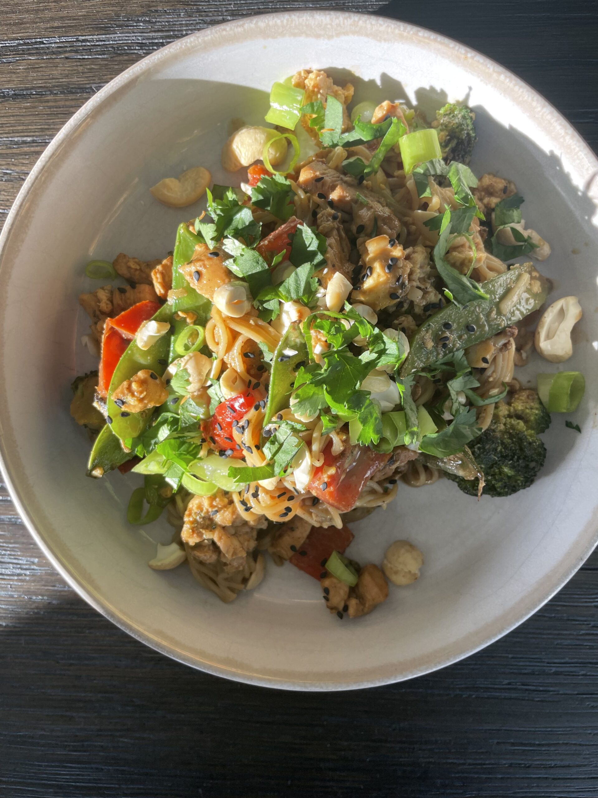 The perfect easy creamy pasta dish cooked in coconut or creamy milk, broth, and a savory beef, onion, mushroom, spinach sauté. Stir in the perfect cheese mixture for an easy one pot weeknight dinner